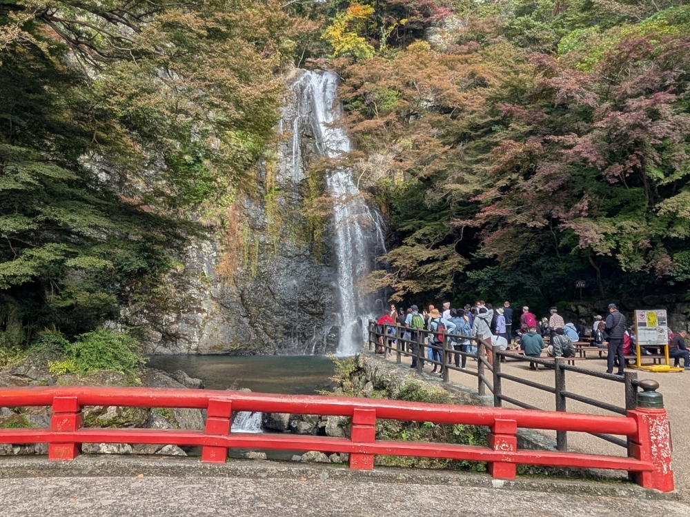 箕面の滝へ行ってきました。 紅葉が少しずつ色づきはじめていて…
